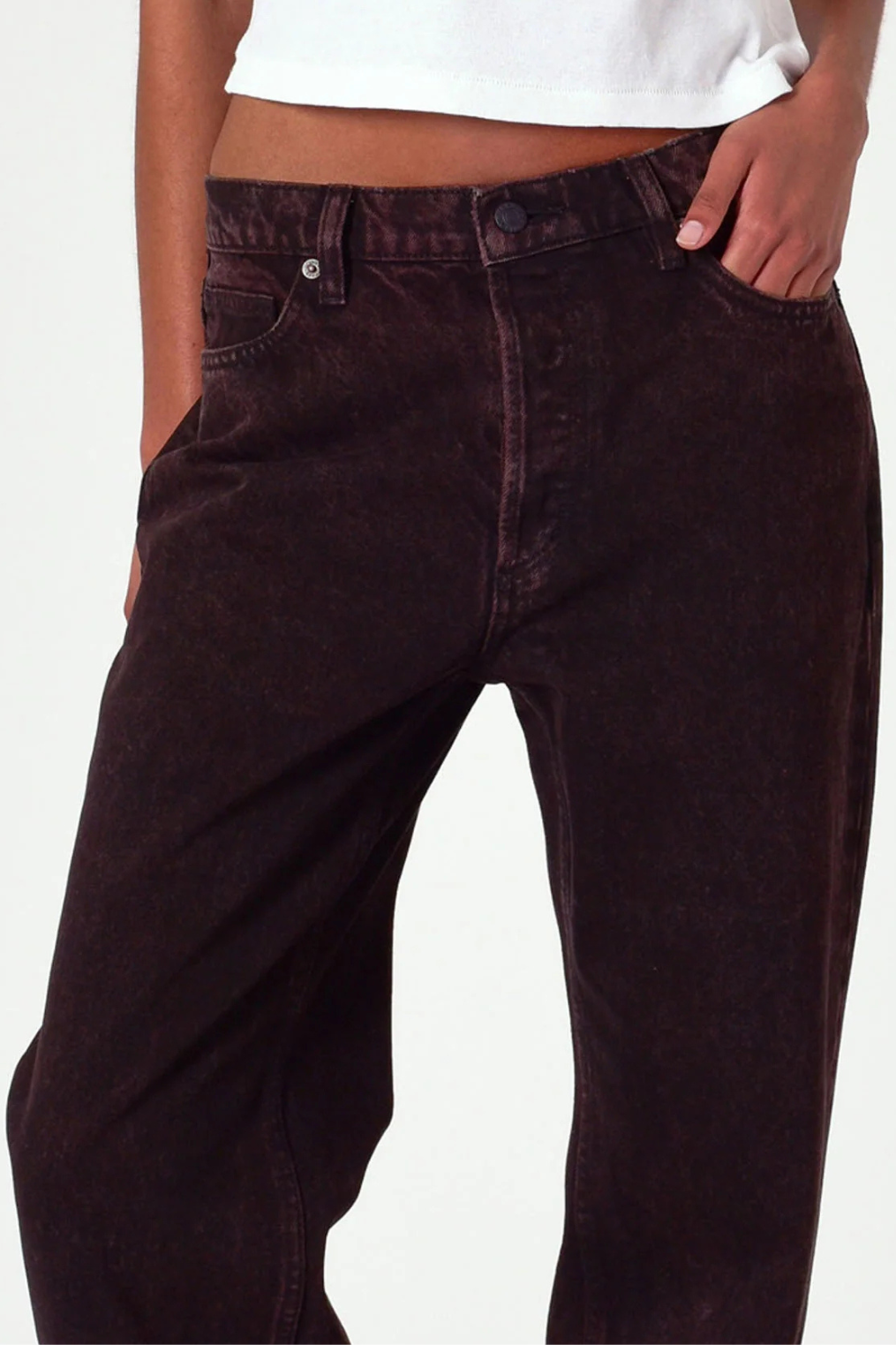 faded dark brown wash straight cut womens jeans