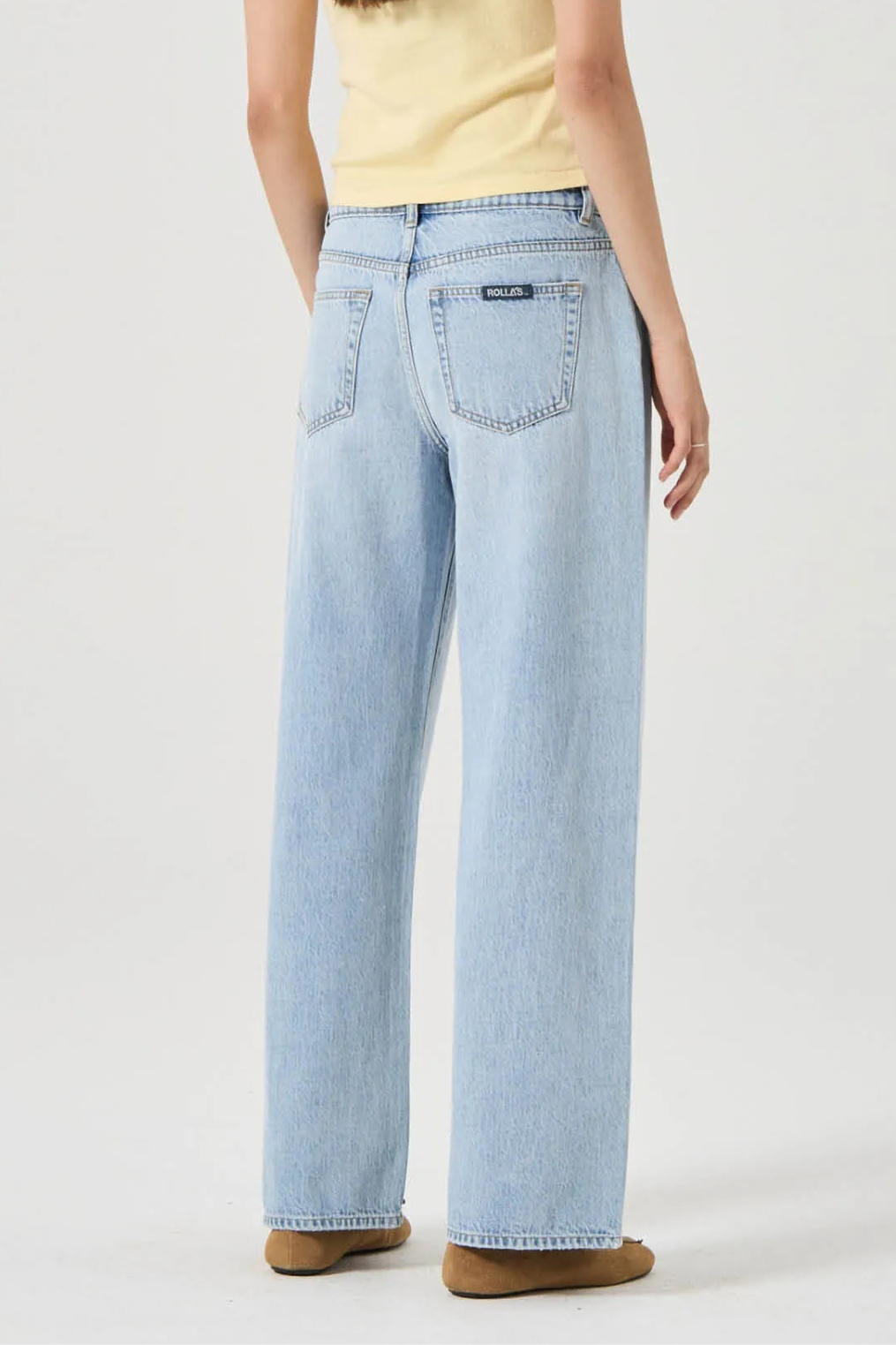 Mid-rise, loose fit blue jean with a full-length baggy leg.